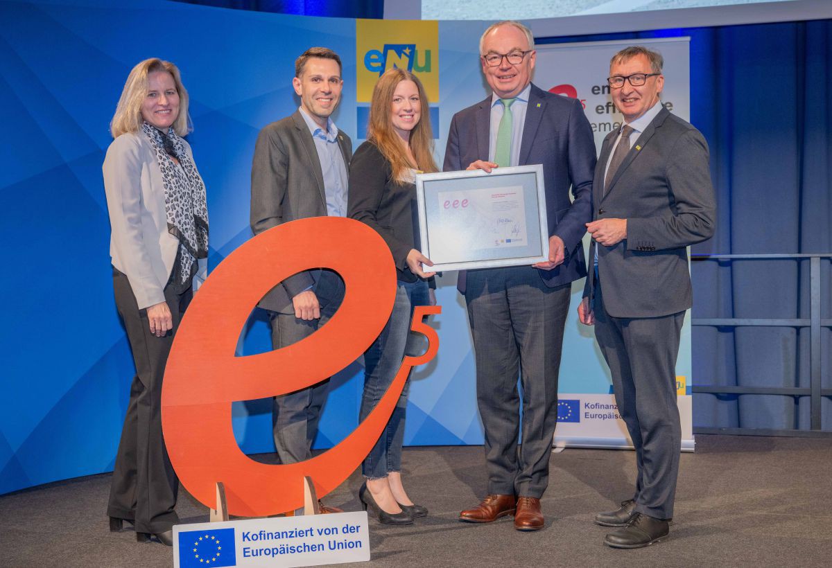 e5-Auszeichnungsveranstaltung 2025 in Tulln mit LH-Stellvertreter Stephan Pernkopf (Mitte) sowie Geschäftsführer der eNu Herbert Greisberger (2. v. r.)